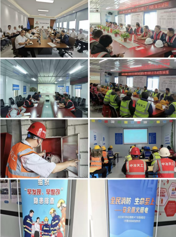 宣傳演練并舉,提升全員“戰(zhàn)斗力”。通過多措并舉,著力提升宣教培訓(xùn)與應(yīng)急處突實(shí)效。一方面,各項(xiàng)目充分利用橫幅、電子屏、工作群等載體,密集宣傳消防法規(guī)、安全規(guī)范及自救知識,營造出“人人關(guān)心消防、處處注意安全”的濃厚氛圍。同時(shí),聚焦電焊工、電工等重點(diǎn)崗位及分包單位、新入場人員開展專項(xiàng)培訓(xùn),結(jié)合行業(yè)典型案例深度解析風(fēng)險(xiǎn),明確動火審批、易燃品管理等要求。另一方面,堅(jiān)持“貼近實(shí)戰(zhàn)、以練促防”原則,在各項(xiàng)目現(xiàn)場模擬“作業(yè)層動火”“生活區(qū)用電”等典型火災(zāi)場景,組織開展應(yīng)急演練。演練涵蓋報(bào)警、疏散、初期撲救及協(xié)同救援全流程,并特邀專業(yè)人員進(jìn)行滅火器材實(shí)操指導(dǎo),確保員工真正掌握“應(yīng)知應(yīng)會”,有效檢驗(yàn)并提升了應(yīng)急預(yù)案的可行性與團(tuán)隊(duì)協(xié)作能力。